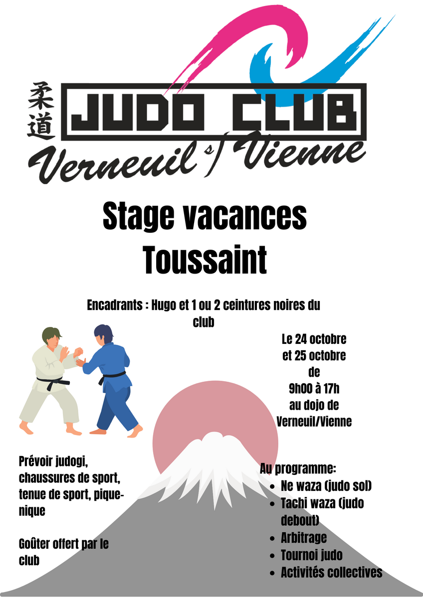 Stage ne waza (judo sol), tachi waza (judo debout), sports collectifs, tournoi interne au club.