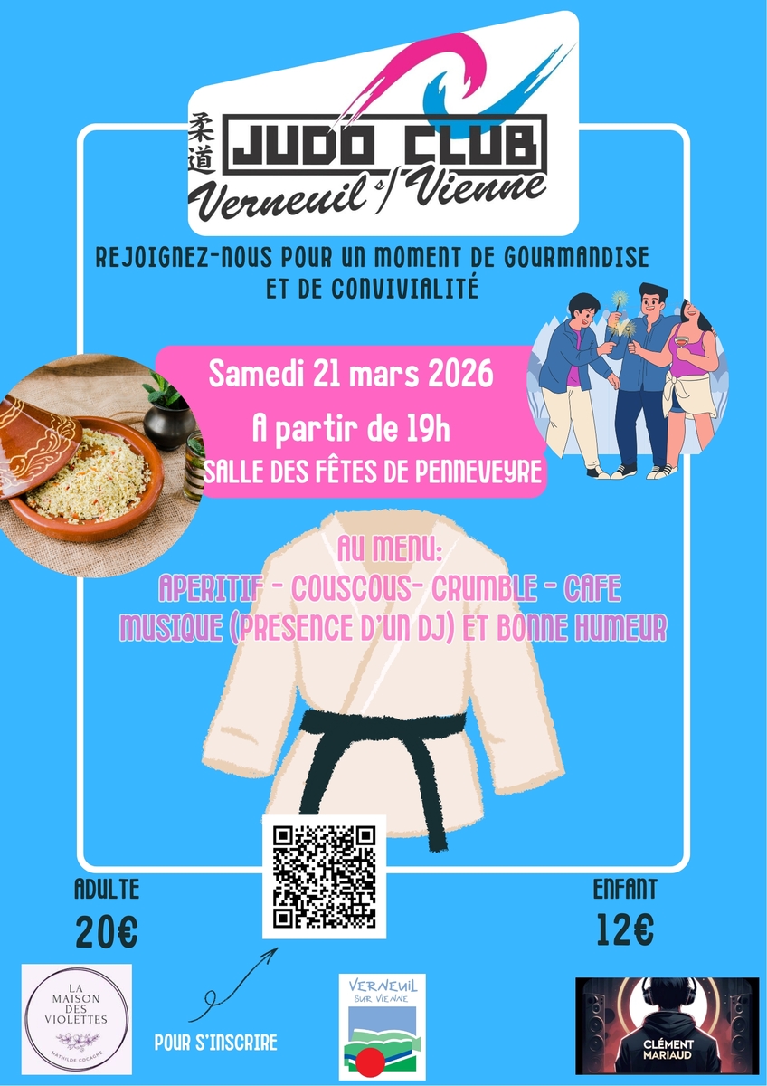 Soirée festive organisée par le Judo Club Verneuil sur Vienne le 21 mars 2026.
