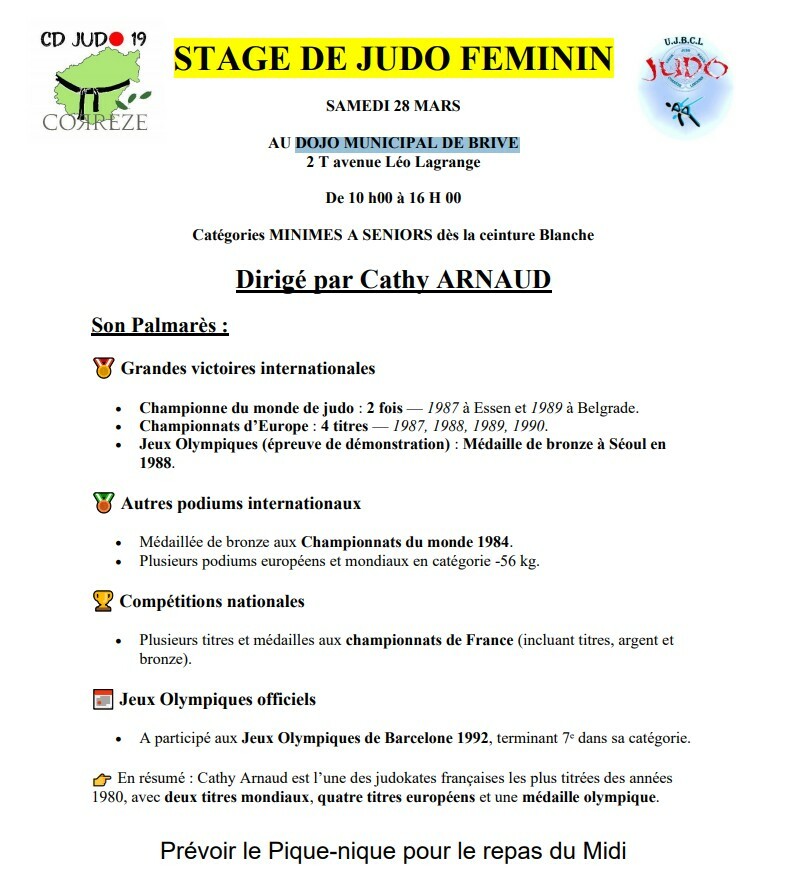 Le stage sera animé par une immense championne du judo français : Cathy Arnaud.